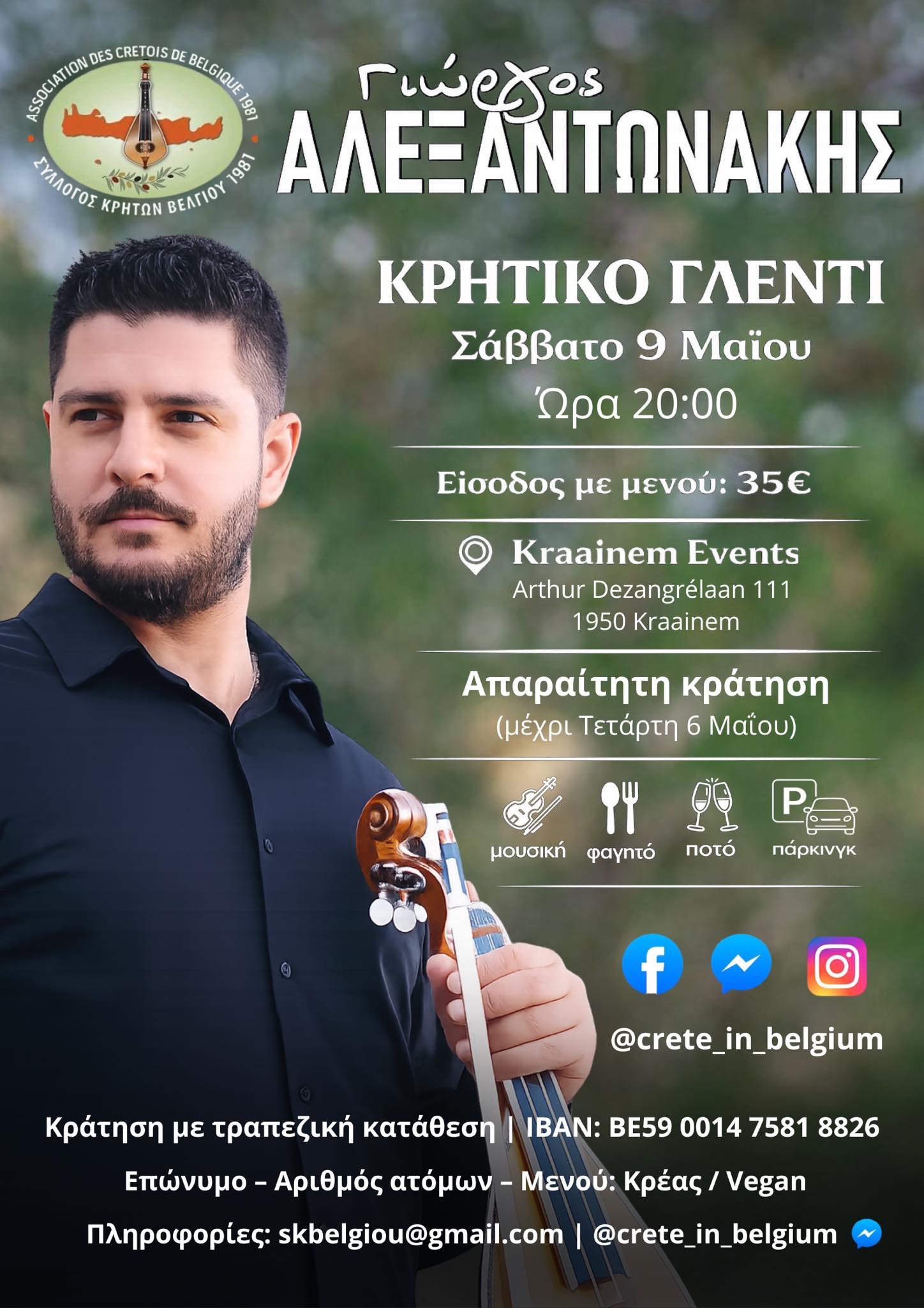 Η εκδήλωση περιλαμβάνει ελληνικό μπουφέ με 25 ευρώ το άτομο, ή 15 ευρώ για τα παιδιά και ελεύθερο πάρκινγκ.