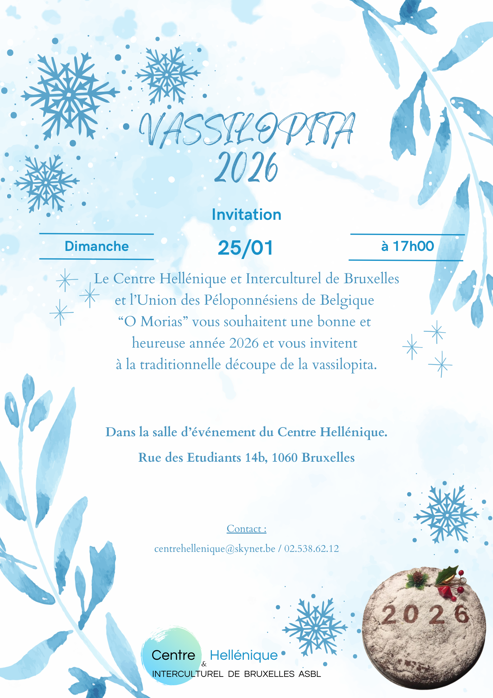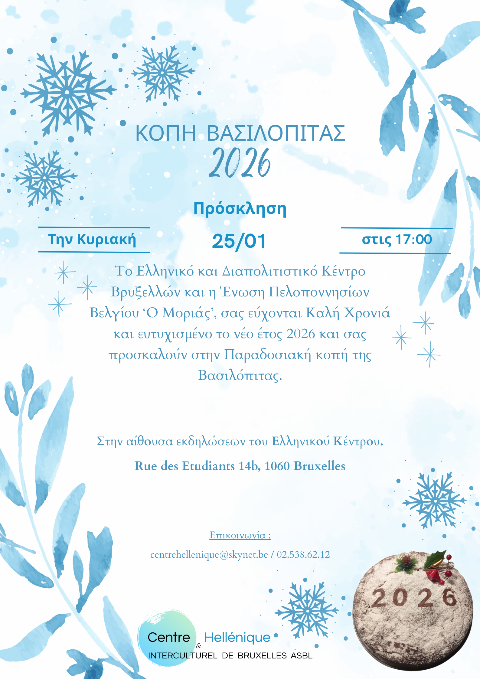 ΠΡΟΣΚΛΗΣΗ για την κοπή της Βασιλόπιτας - Κυριακή 25 Ιανουαρίου 2026 και ώρα 17:00